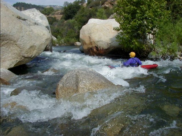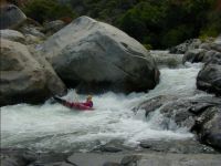 This section is a logical extension to either the Park Boundary run below or the Ash Mountain run above. If you run the Ash Mountain section including the Iron Lung Gorge then you will undoubtably include the Extended Boundary as part of the run. The Extended Boundary is more difficult than the Park Boundary Run and has a narrower window. While the lowest boatable flow of this section is the same as the Park Boundary section, it's upper boatable level will be less unless you are willing to run some more difficult water. The Extended Boundary is seldom run becuase of it's difficulty and more likely due to lack of awareness of what it contains. Hopefully the publication of this log will increase the boater count on this section in the future.